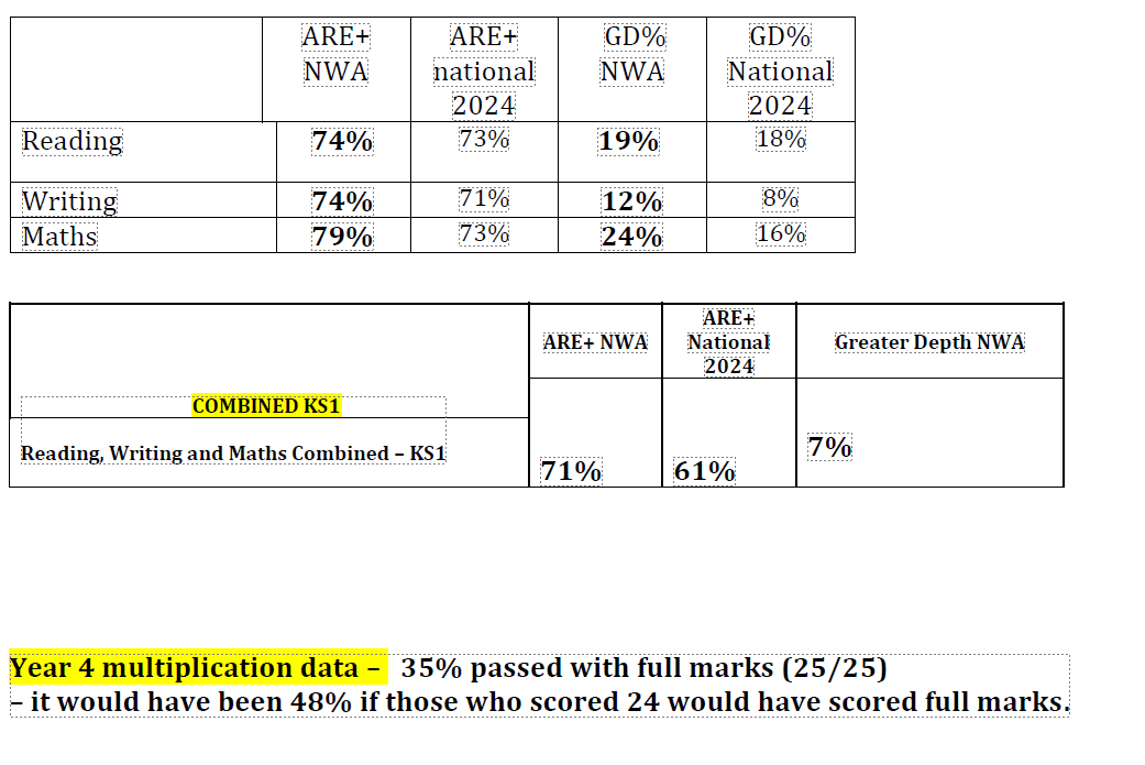 Y1 Phonics Screening – 82% - National average 2024 80%