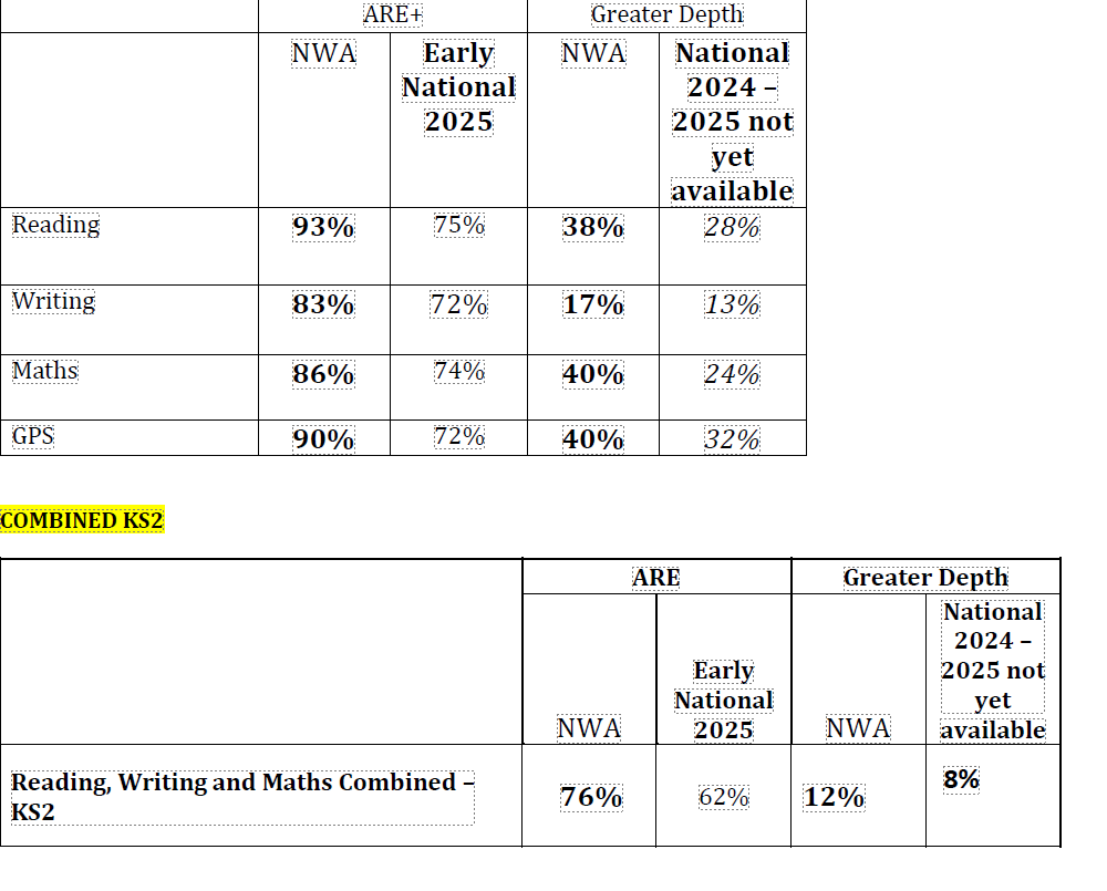 KS2 SATs – plus it needs to be noted as it is by the DfE that these children experienced disruption to their learning during the pandemic; particularly at the end of Year 1 and in year 2.